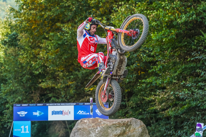 Over the weekend just gone, the seventh round of the Herzt Fim Trial World Championship 2023 was held in Vertolaye, France. The race took place in a pinegrove, characterised by an undergrowth full of stones and a dusty track, which was however well designed and enjoyable for riders and viewers, confirming the excellent organisation of the Motoclub Livradois.